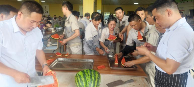 在發(fā)放現(xiàn)場,公司相關(guān)負(fù)責(zé)人親自將防暑物資一一送到員工手中,叮囑大家在高溫天氣下一定要注意防暑降溫,合理安排工作時(shí)間,確保自身安全與健康。同時(shí),強(qiáng)調(diào)各部門負(fù)責(zé)人要時(shí)刻關(guān)注員工的身體狀況,在保障工作正常開展的前提下,靈活調(diào)整工作安排,避免員工長時(shí)間在高溫環(huán)境下作業(yè)。在食堂,公司定時(shí)定點(diǎn)的安排人員,合理有序的為員工發(fā)放切好的西瓜。
